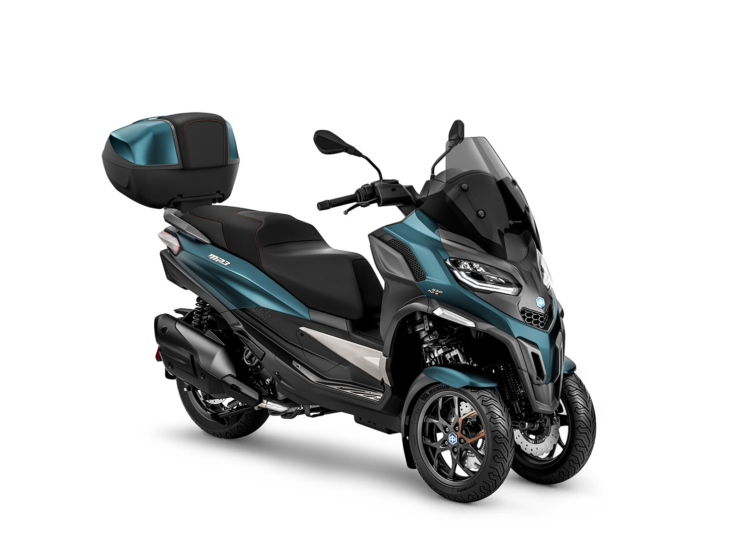 Der erste Dreiradradroller der Welt. Die Piaggio-Roller MP3 400 und MP3 530 verbinden automobile Sicherheit mit der Fahrdynamik eines Motorrads. Seine ausgeprägte Fahrstabilität garantiert immer und überall ein Höchstmaß an Komfort und Kontrolle. Seit 2019 gibt es den Piaggio-Roller MP3 500 auch mit Rückwärtsgang.