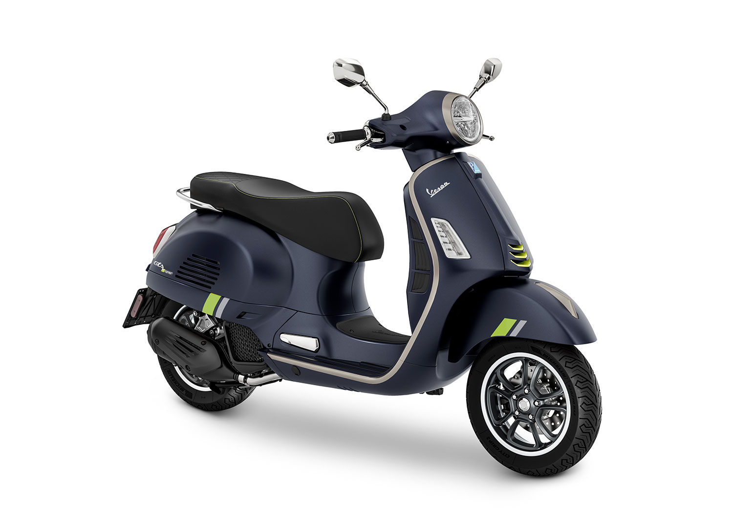 Die Vespa GTV ist eine Hommage an die kühne, faszinierende Seite von Vespa. Die Vespa GTV fängt den Spirit der berühmten „Vespone“  mit einer besonderen Lackierung und einem Look ein, der ihre sportliche Persönlichkeit in einer auffallenden Kombination aus modern, klassisch und unerschrocken unterstreicht.